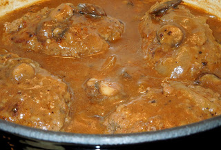 In a couple of drizzles of olive oil, brown the steaks on both sides, then remove from the pan. It's not necessary to cook them all the way through at this point, just brown.