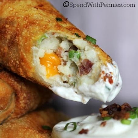 Lay each egg roll wrapper out with a corner pointing towards you. Place your mashed potato and cheese filling in the center of each wrapper. Fold in the sides and roll the wrapper tightly. Use a dab of water to secure the tip of the wrapper. (If you don't know how to roll an egg roll it usually shows on the package).