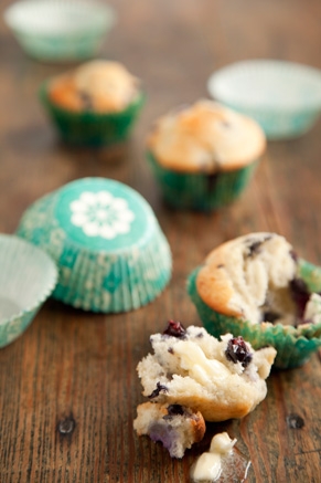 In a bowl, combine the flour, baking powder and sugar. In another bowl, combine butter, egg, and milk and mix well. Pour the wet ingredients into the flour mixture and with a spatula, stir until just combined. Do not beat or over mix; it’s okay if there are lumps in the batter. Gently fold the blueberries into the batter.