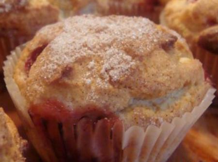 4 Combine sugar and cinnamon and sprinkle over muffins.
