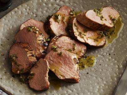 Remove the pork from the marinade, wiping off any excess. Season both sides with a generous amount of salt and pepper. Drizzle with olive oil and place on the grill. Grill the pork on the hottest part of the barbecue for 4 minutes per side, until well charred. Allow the tenderloin to rest for about 5 minutes prior to slicing. Spoon some chimichurri over the meat, drizzle with lime juice, garnish with parsley, and serve with the remaining sauce at the table.