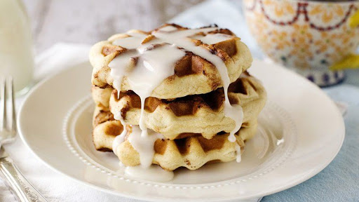 Cinnamon Roll Waffles with Cream Cheese Glaze
