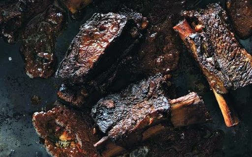 Return ribs and bacon to pot and braise, covered, in oven until ribs are very tender, 3 to 3 1/4 hours. Skim fat from sauce.