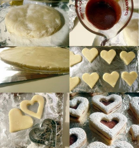 Cool cookies completely then fill with jam and dust the cut-out cookies with powdered sugar. Sandwich them together then eat :)!