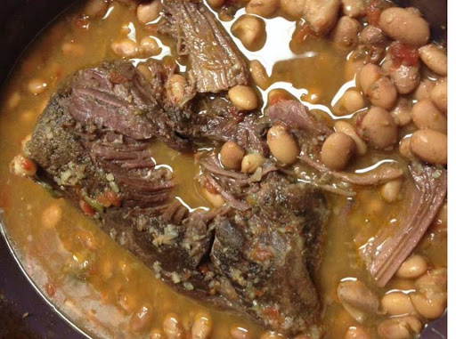 Turn crock pot on medium and cook until roast falls apart and beans are done.