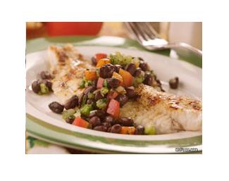 Evenly sprinkle fish with remaining salt and black pepper, and the cumin, and place in grill basket. Grill 5 to 7 minutes per side, or until fish flakes easily. Remove fish from basket and top with black bean salsa; serve immediately.