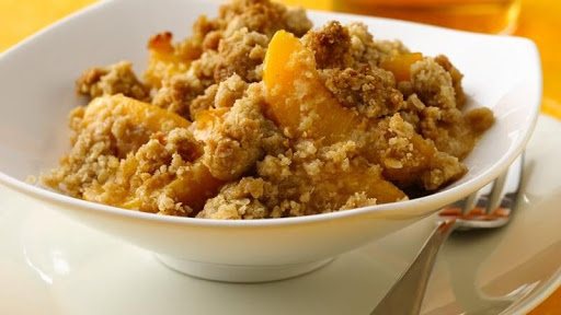 In ungreased 8-inch square baking dish or 2-quart round casserole, place peaches. Sprinkle cookie mixture over peaches.