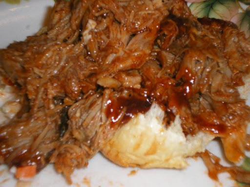 This has been in my recipe book for years, but for some reason we just got around to trying it. I've used other recipes for pulled pork in the crock pot in the past, and we will probably stick with this one from now on! It was extremely easy -- cooked 3.5 lb. pork roast on low for 8 hours, shredded, de-fatted and drained liquid, mixed w/ Stub's BBQ sauce (from grocery store) and kept on low for another 1 1/2-2 hours. Delicious!