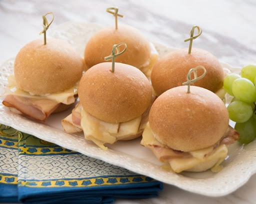 Place on baking sheet and melt in 350°F oven for 1-2 minutes just until cheese is melted. Remove from oven. Spread each top piece of rolls with spread and place on top of melted cheese.