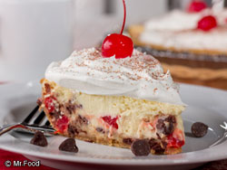 Set aside 8 cherries for garnish, then coarsely chop rest. Add chopped cherries and chocolate chips to cream cheese mixture; mix well, then pour into pie crust.