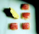 3. Use the meat cutter to cut the squares as thin as possible. Only serve the most jellied slices.