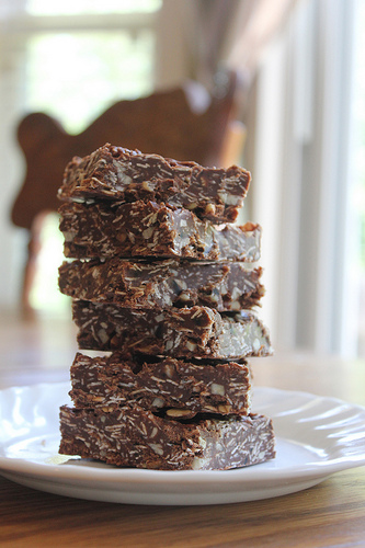 When the mixture is hardened, cut into bars and eat. Store in the refrigerator or freezer.