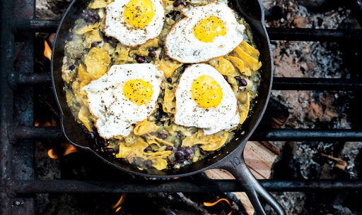 If you’ve got both a camp stove and a grill, you’re golden: Prep the salsa over the live fire and make perfect eggs on the propane stove.
