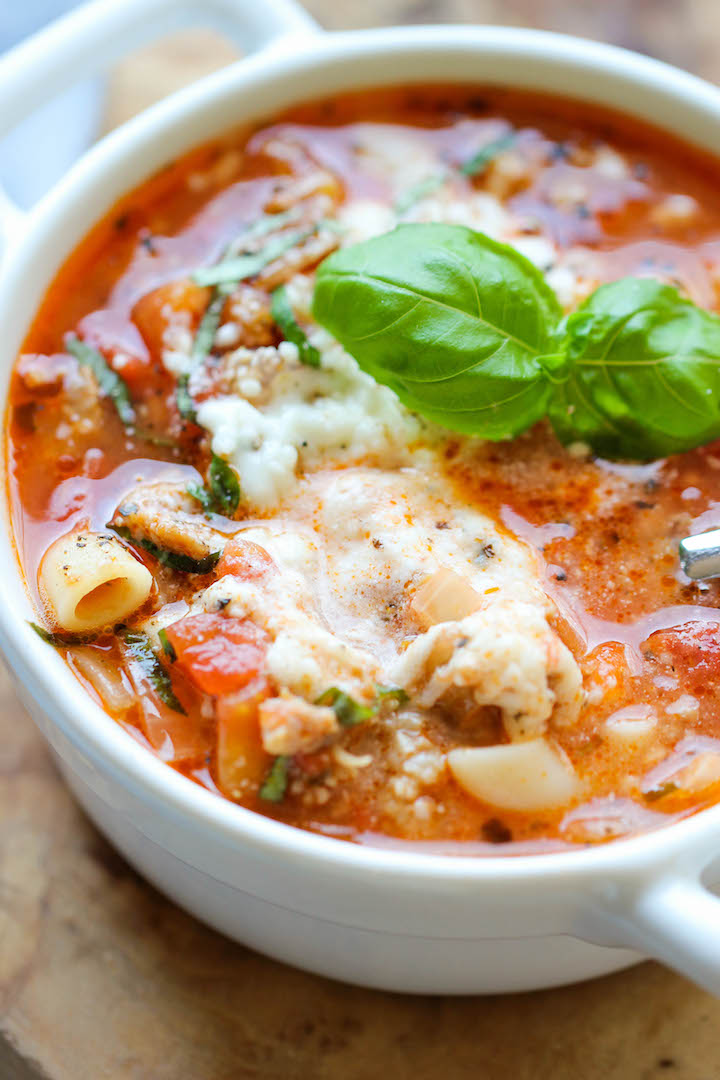 3. Heat olive oil in a Dutch oven or large pot over medium high heat. Add Italian sausage to the skillet and cook until browned, about 3-5 minutes, making sure to crumble the sausage as it cooks; drain excess fat. Add garlic, onion, oregano and red pepper flakes. Cook, stirring frequently, until onions have become translucent, about 2-3 minutes. 4. Stir in tomato paste until well combined, about 1 minute.
