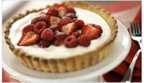 3. Beat cream cheese, icing sugar and vanilla together until smooth. Whip cream until stiff peaks form and fold into cheese mixture. Spread evenly in baked crust and cover attractively with fruit, making a heart shape.