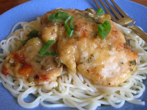 Cover skillet for 5 minutes over medium-low heat turning chicken once.