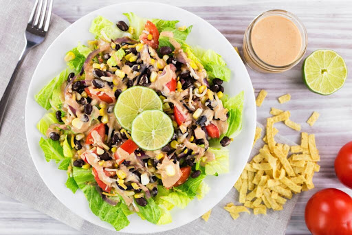 5. Prepare the dressing: In a small bowl whisk together the ranch dressing, barbecue sauce, and the remaining juice of half of the lime.