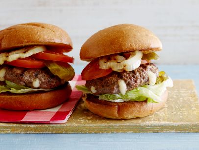 Mix the ground beef, salt and pepper in a large bowl and form the mixture into 8 equal-size balls. Press a cube of desired cheese into the center of each ball and cover completely with meat. Form the balls into hamburger patties, about 1/4-inch thick. Grill burgers until desired doneness. Top with lettuce, tomatoes, onions and pickles as desired on a toasted bun.
