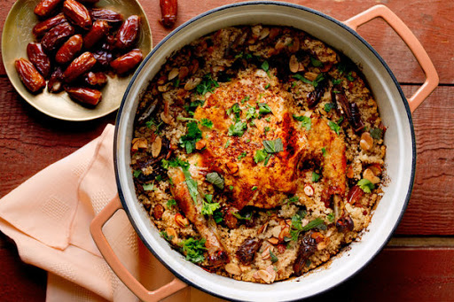 Roast Chicken With Couscous, Dates and Buttered Almonds