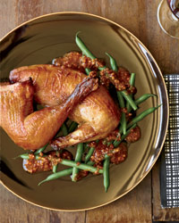 "This recipe looks like a doozy, but it really delivers," says Andrea Reusing. "The chickens are just so reliably juicy, even when they're cooked longer than they should be." Smoking the birds quickly over anise-scented tea makes them wonderfully fragrant. If you prefer to cook one chicken instead of two, smoke it in a wok or a pot rather than a roasting pan.
