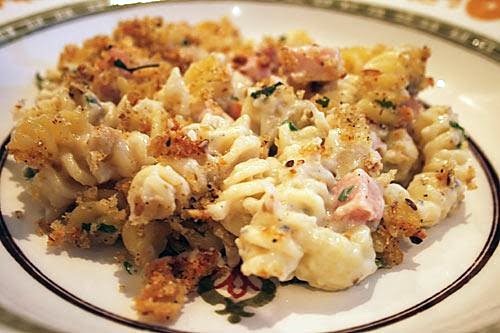 Preheat oven to 375 degrees F. Lightly grease a casserole dish with butter or oil and spoon pasta into prepared dish.