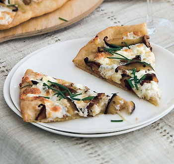 SHIITAKE AND CHANTERELLE PIZZAS WITH GOAT CHEESE