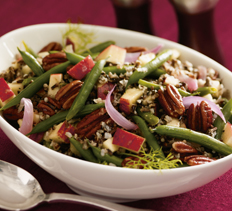 4. Combine rice, onion, green beans, pecans and apple in large bowl; toss with 3/4 teaspoon salt and 1/4 teaspoon pepper. Toss with vinaigrette.