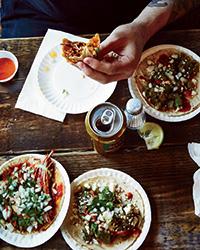 - Warm corn tortillas, cilantro leaves, sour cream and lime wedges, for serving