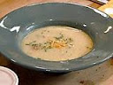 Add oil to a large pot set over medium-high heat. Add onion and celery and saute for 2 to 3 minutes, or until they start to soften. Add stock and mashed potatoes and bring to a simmer.