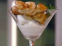 Scoop frozen yogurt or ice cream into dessert bowls and lay twists over top.