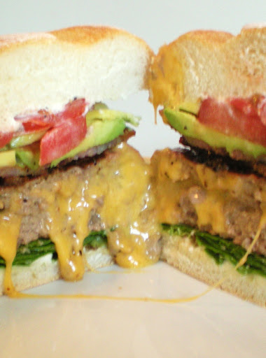 4. Warm the buns and add a lettuce leaf, sliced tomato, burger, and avocado slices, if desired,