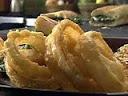 Take the onion rings and remove the thin membrane found between the layers; (otherwise the batter won't stick as well). In a large dish add some rice flour, and season with salt and pepper, to taste. Coat each ring in the flour. Dip in the batter and fry in hot oil in batches until golden. Drain on paper towels and season with salt.