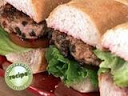 Stir preserves into mayonnaise in small bowl. Spread on cut sides of bread. Cut the loaf into 4 equal sections. Top the bottom bun with burger then tomato slices and 2 pieces lettuce. Place top bun on lettuce.