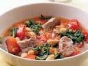 Add kale and stir just until it wilts. Reduce heat to maintain a lively simmer and cook, stirring occasionally, until the kale is just tender, about 4 minutes. Stir in beans, the reserved pork and any accumulated juices; simmer until the beans and pork are heated through, about 2 minutes.