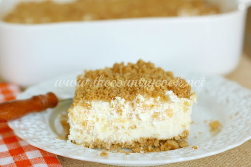 Now, sprinkle the rest of the graham cracker crumb mixture on the top. Cover the whole dish with plastic wrap. Then refrigerate for at least 4 hours.