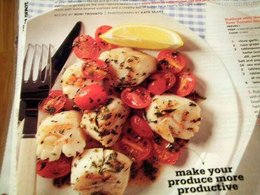 2. Preheat a grill to medium-high. Thread the scallops on skewers and brush with the olive oil; season with salt and pepper. Grill, turning once until firm and slightly charred, about 8 minutes. Remove from the skewers and add to the tomato mixture.