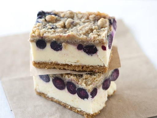 Bright lemon and sweet blueberries combine for these tasty cheesecake bars.