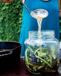 - 1 . In a small saucepan, simmer the vinegar, water and salt, stirring, until the salt dissolves. Combine the beans and dill in a heatproof bowl; cover with the hot brine. Let cool to room temperature, about 2 hours. Serve at room temperature or chilled