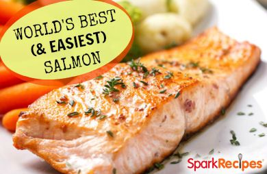 Combine the first 3 ingredients in a gallon-size ziploc bag, shake it up, and then add the salmon. Allow to marinate in the refrigerator for an hour, turning after half an hour. Pour the salmon and the marinade into a baking dish and bake in a 350 degree oven, covered with foil, for 15 minutes. The salmon is done when it flakes easily at the thickest part. Enjoy! Makes (4) 3 ounce servings.