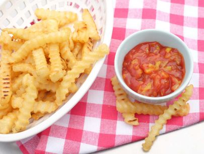 Put the ketchup and banana peppers in a bowl and mix it up!