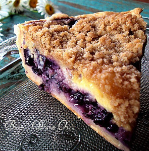 Combine 1 cup sugar, 1/3 cup flour, and salt. Add eggs and sour cream, stirring until blended. Pour the sour cream custard over the blueberries.