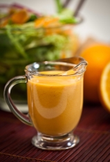Wash the orange thoroughly and use paring knife or microplane to zest half of orange; be careful to avoid the white, bitter pith. Squeeze the orange for 3 tablespoons of orange juice and add orange juice and zest with remaining ingredients to FourSide jar and secure lid. Select “Whole Juice” and serve.