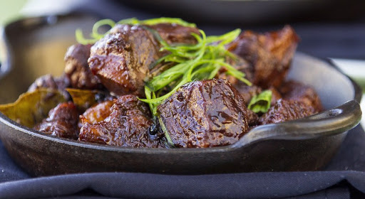 Bring to a simmer and reduce sauce again until sauce starts to glaze and sticks to meat.