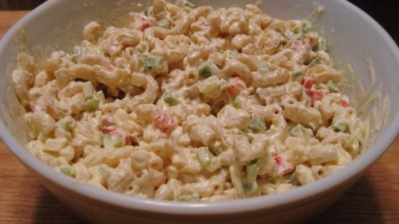 Stir in macaroni, celery, green pepper and onion.