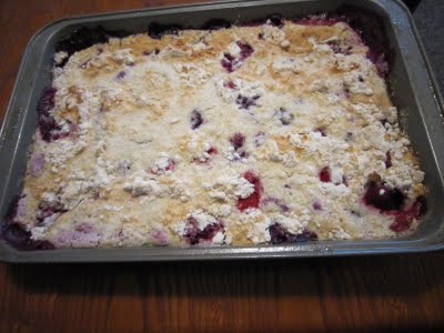 Place both bags of frozen fruit into a 13 x 9-inch sprayed baking dish (do not thaw)