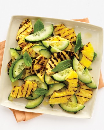 Heat grill to high. Grill pineapple until grill marks appear, about 2 minutes per side. Let cool.