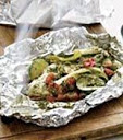 Mound one-quarter of the zucchini, tomatoes and scallions over each chicken breast. Dollop 3 tablespoons pesto over each mound. Fold the foil over the chicken and vegetables; pinch the edges to seal.