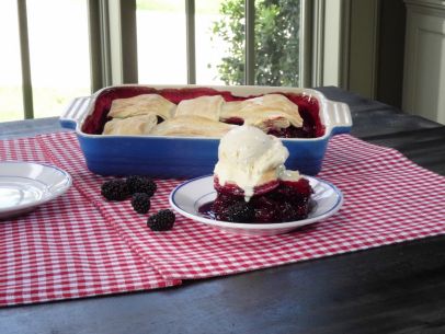 Pour 1 cup of the blackberry mixture into the bottom of the buttered dish. Closely line half of the dough strips on top of the blackberry mixture. Bake for 12 minutes or until the dough starts to brown. Remove from the oven and pour the remaining berry mixture over the baked strips. Closely line another layer of dough strips on top and bake for another 12 minutes or until the dough has browned. Serve warm with a scoop of vanilla ice cream.