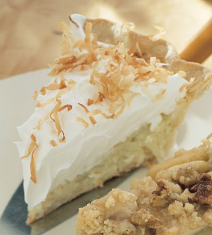 Pastry for single-crust pie (9 inches): Combine 1-1/4 cups all-purpose flour and 1/4 tsp. salt; cut in 1/2 cup cold butter until crumbly. Gradually add 3-5 Tbsp. ice water, tossing with a fork until dough holds together when pressed. Wrap in plastic wrap and refrigerate 1 hour. Editor's Note: To toast coconut, spread in a 15x10x1-in. baking pan. Bake at 350° for 5-10 minutes or until lightly browned, stirring frequently.