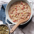 Bring 1/2 cup dried fruit (such as goji berries, cranberries, or barberries), 1/2 cup steel-cut oats, 1/2 cup well-rinsed quinoa, 1/4 cup raisins, 1 teaspoon kosher salt, 1/2 teaspoons ground cinnamon, 1/4 teaspoons ground cardamom, and 4 cups water to a boil in a medium saucepan. Cover and let sit off heat overnight. (Alternatively, bring mixture to a boil; reduce heat and simmer, stirring occasionally, until grains are tender, 20-25 minutes.)